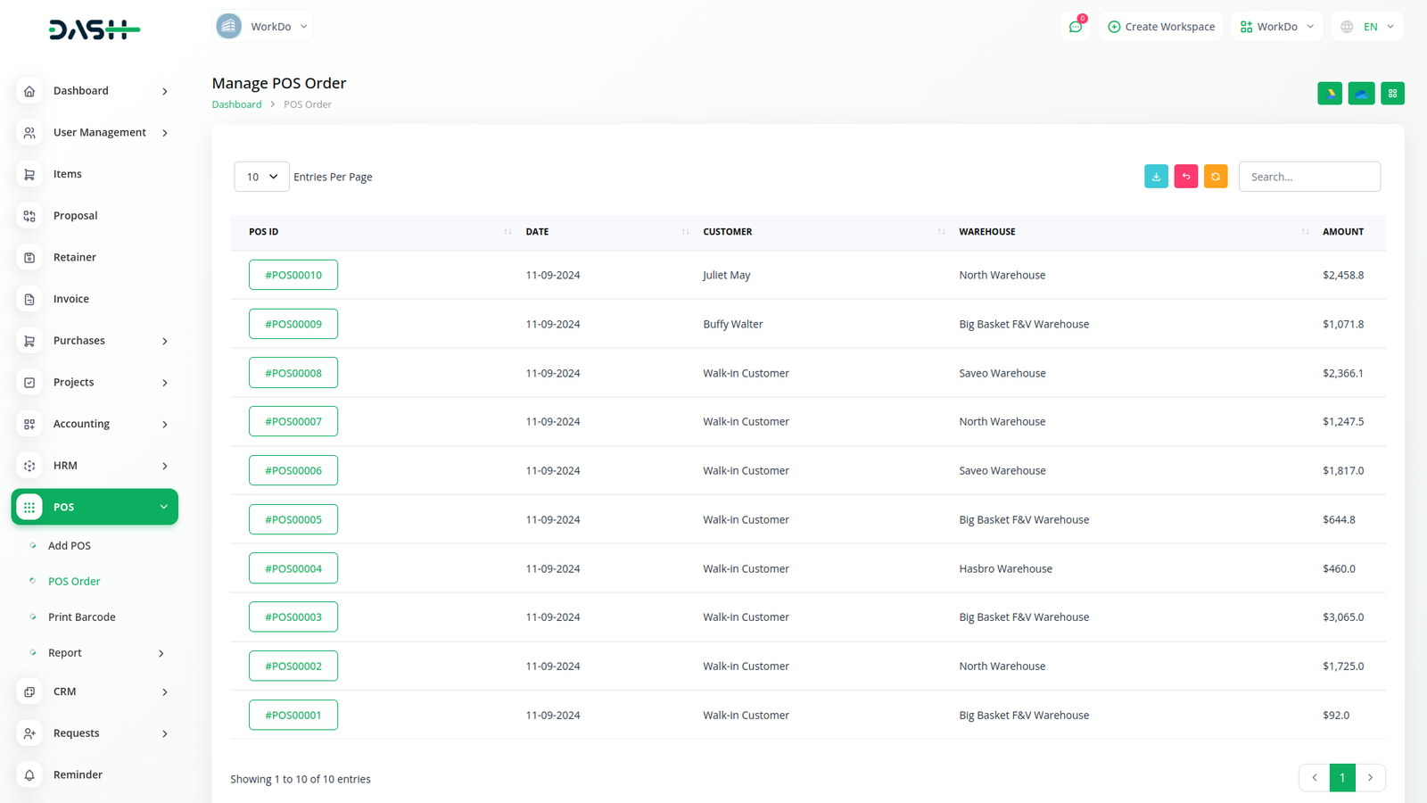 Simplifique o gerenciamento de vendas com o Dash SaaS POS. Rastreie a receita, gerencie produtos, processe pedidos e utilize a funcionalidade de código de barras para transações perfeitas.