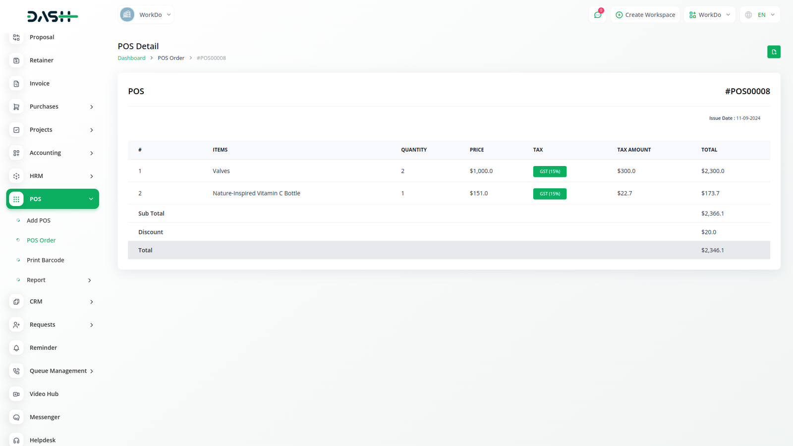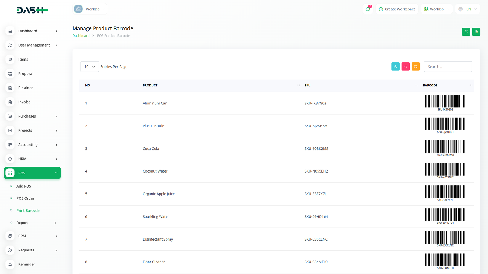 Aumente a eficiência no seu fluxo de trabalho de vendas com o Dash SaaS POS, um recurso de impressão de código de barras simplificado. Gere facilmente códigos de barras para produtos e pedidos selecionando itens e especificando quantidades. Essa funcionalidade simplifica o gerenciamento de estoque e acelera os processos de checkout. Melhore a produtividade operacional imprimindo rapidamente quantos códigos de barras forem necessários, capacitando sua empresa a atender às demandas dos clientes de forma eficaz. Experimente a conveniência e a flexibilidade com o Dash SaaS POS, um recurso de impressão de código de barras, personalizado para otimizar suas operações de vendas.