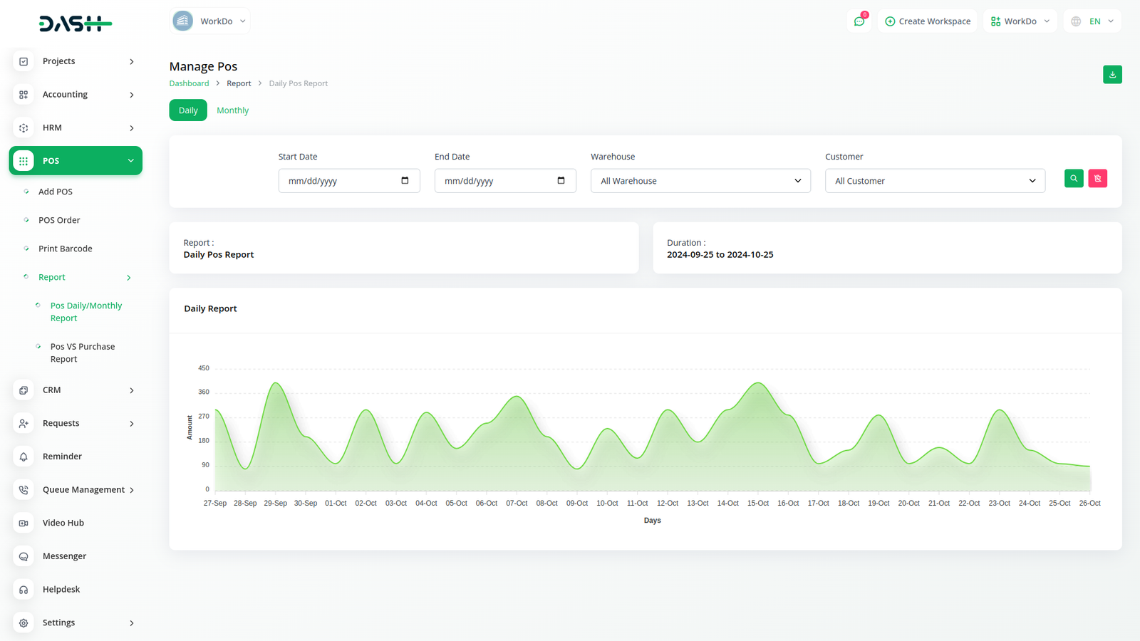 Bem-vindo ao Módulo POS no Dash SaaS, sua solução definitiva para gerenciamento de vendas simplificado. Nossa plataforma oferece um painel amigável onde você pode navegar facilmente por suas atividades de vendas. No centro do painel está um gráfico dinâmico que representa seus relatórios de vendas, fornecendo insights valiosos sobre o desempenho do seu negócio. Seja você uma pequena loja de varejo ou um restaurante movimentado, nosso Módulo POS permite que você gerencie seu processo de vendas de forma eficiente do início ao fim.